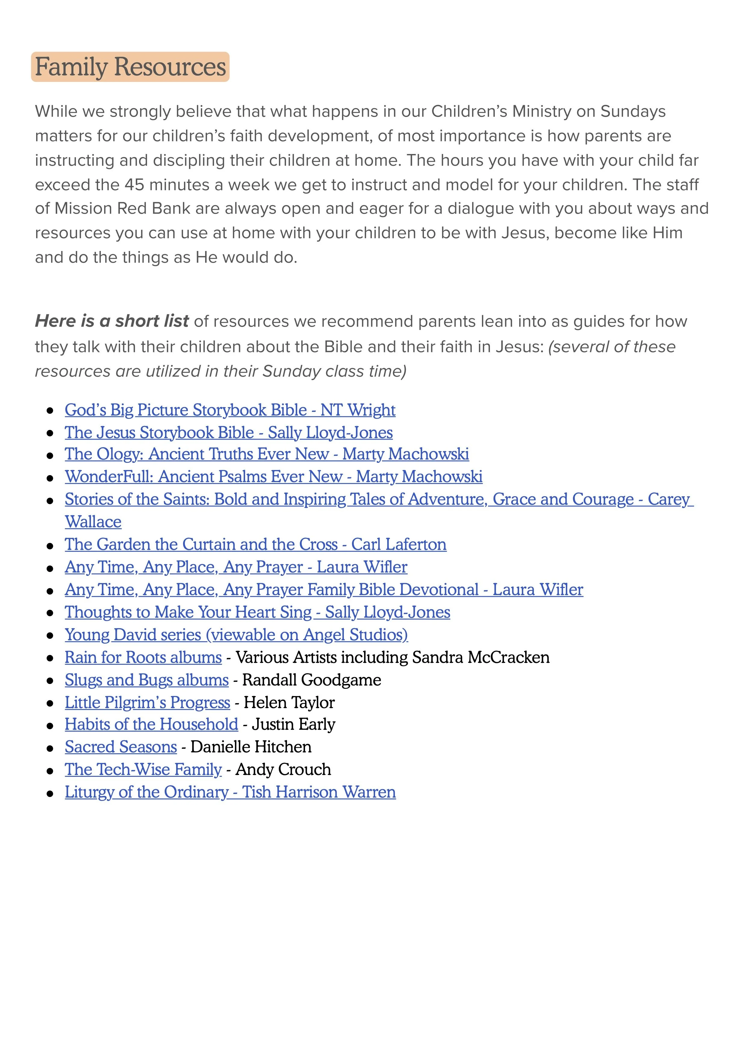 Check out the lists below for formational reading suggestions and Sunday School opportunities that are available throughout the year.