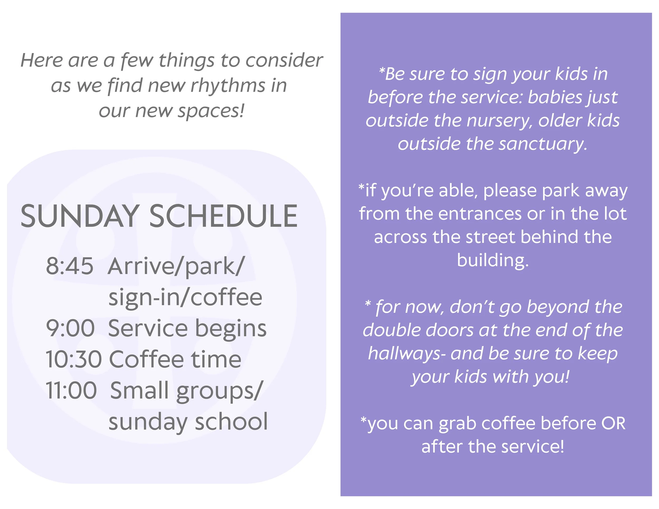 where we are meeting for services and when